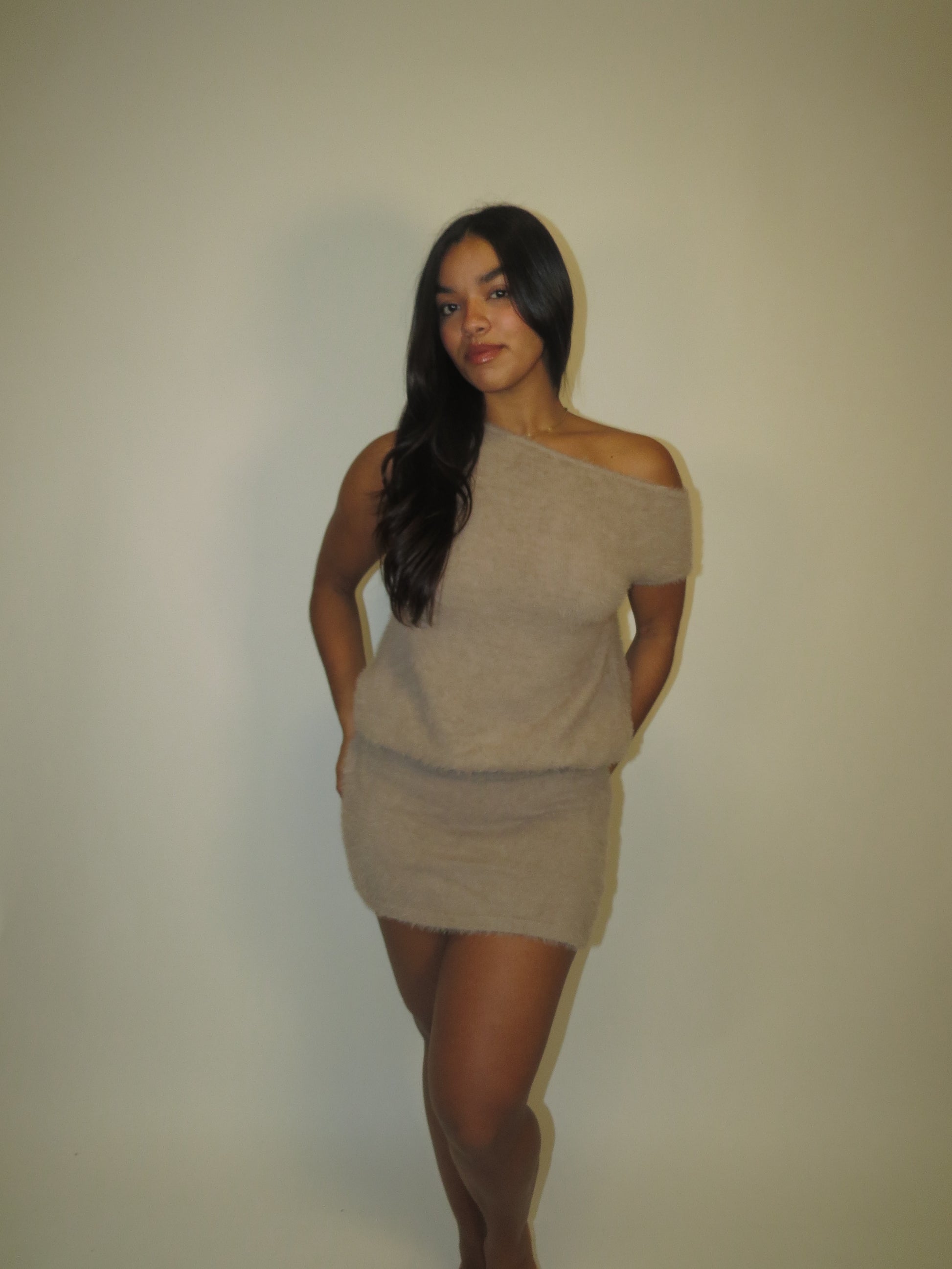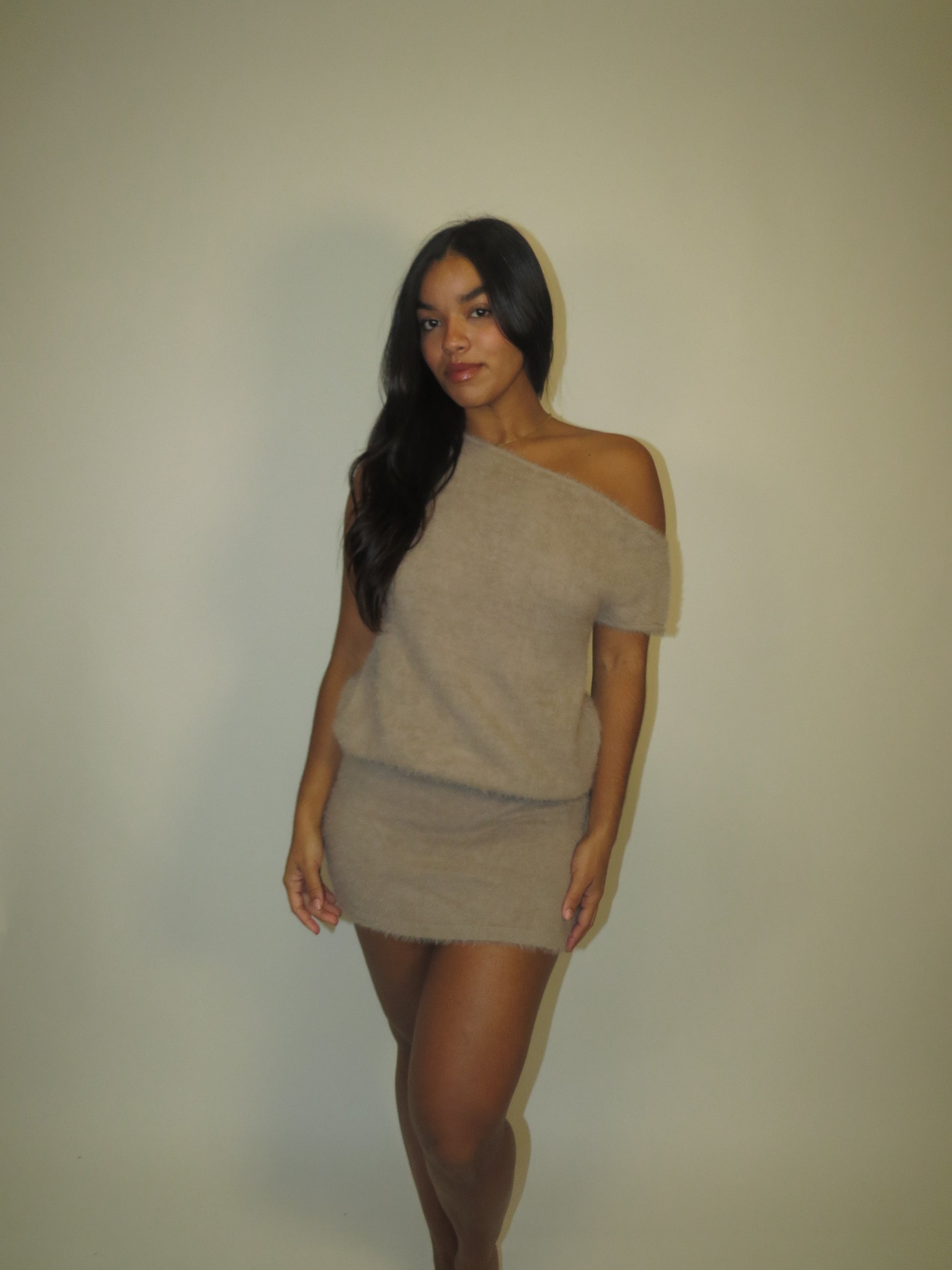 Soft to the touch with standout style, this fuzzy one shoulder sweater dress blends comfort and allure in one chic silhouette. The asymmetrical neckline adds modern edge, while the plush knit texture keeps things cozy-perfect for cooler nights when you want to stay warm without sacrificing style.